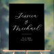 Erstellen Sie Ihr eigenes Acryl-Hochzeitszeichen mit individuellen Namen, Datum und anderen Hochzeitsdetails in Schwarzweiß, elegante Schriftzeichen und moderne Typografie. Eine elegante und minimalistische Art, die Gäste an Ihrem besonderen Tag zu begrüßen.