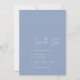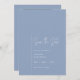 Eine einfache Hochzeit speichert die Datumsanzeige in hübsch staubblauer Farbe, mit der Überschrift "Save the Date" in weißem, modernem, handgeschriebenem Schriftart. Fügen Sie auf der Rückseite Ihre Foto- und Hochzeitswebsite mit QR-Code hinzu.