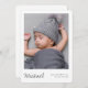 Diese einfach bezaubernde Foto-Geburtsankündigung Flachkarte zeichnet sich durch ein zeitgemäßes Design aus, das einfach an das Foto, die Details und Ihre Botschaft Ihres Babys angepasst ist. Wir haben abgerundete Ecken als Standard-Kartenform gewählt, aber man kann das Aussehen leicht in scharfe Ecken verändern, da dieses Aussehen auch wunderbar mit diesem Design funktioniert. Versuchen Sie beide Formen im Bearbeitungsmodus und sehen Sie, welche Sie greifen! Neben viel Platz für Ihr Foto, haben wir den Vornamen Ihres Babys zum Fokus gemacht, in einem modernen Skript, das gleichzeitig ordentlich und lesbar, aber auch ausdrucksvoll, warm und vertraut ist. Das Skript mit dem Vornamen und der andere Text auf der Vorderseite der Karte ist ein sehr dunkelgrau, das standardmäßig meist schwarz ist. Sie können die Farbe und den Schriftart dieses oder eines anderen Textes nach Ihrem Geschmack ändern. Wenn Sie ein minimalistischeres Aussehen bevorzugen, können Sie löschen, ohne einen unserer Beispielstatistiken zu ersetzen - Sie wollte z.B. nicht, die Zeit des Tages oder die Länge einzubeziehen. Da die Mittel- und Nachnamen Ihres Babys nicht auf der Vorderseite stehen, ist der Nachrichtenbereich auf der Rückseite ein guter Platz, um diese Informationen einzubinden. Wir haben den Hintergrund auf beiden Seiten als transparent Set, um die Farbe Ihres Papiers lassen, dienen einfach als Grundton. Sie können dies ändern, indem Sie stattdessen eine Farbe auswählen, sei es ein weiches Blau oder Rosa oder alles andere. Auf der Rückseite haben wir Ihnen einen Platzhalter-Text hinzugefügt, der durch Ihre eigene Nachricht ersetzt wird. Sie können auch den Schriftart und/oder die Textfarbe ändern. Die standardmäßige Textfarbe auf der Rückseite ist ein grauer Ton. Nachdem Sie unseren Platzhalter-Text gelöscht haben, können Sie sich entscheiden, den Rücken ganz leer verlassen, sodass Sie nach Erhalt Ihrer Karten eine handgeschriebene Nachricht mit Ihren Signaturen hinzufügen können. Oder Sie geben eine Nachricht ein und unterschreiben die Karten dann per Hand, nachdem Sie sie erhalten haben, anstatt Ihre Namen einzugeben, wenn Sie den anderen Text bearbeiten. Vergessen Sie in jedem Fall nicht, alle Platzhalter auf der Rückseite zu entfernen, einschließlich der Probennamen, der Probendetails und des Fotos auf der Vorderseite! Der Standard-Papiertyp, Matte, hat eine weiche Wärme und widersteht dem Schmieren, also ist es eine großartige Wahl, um Ihre eigene Nachricht zu schreiben. Nutzen Sie die intuitiven Designwerkzeuge, Ihr Lieblings-Foto und Ihre Inspiration, um diese individuell gestaltete und individuell gestaltete Geburtstagskarte zu personalisieren.