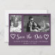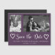 Modernes lila Pinselskript extravagant Save the Date Hochzeit mit 2 Fotos Collage - eine vertikal / portrait orientiert und die andere horizontal / landschaftlich und zwei Doddle Herzen. ++++++++++++++++ Persönliche Gestaltung mit Fotos, Namen und Hochzeitstermin!