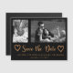 Moderne Imitate Kupfer-Glitzer-Kalligraphie-Drehbuch Sperren Save the Date Hochzeitsmagnetische Karte mit 2 Fotos Collage - eine vertikal / portrait orientiert und die andere waagerecht / landschaftlich. und zwei Doddle Herzen. ++++++++++++++++ Persönliche Gestaltung mit Fotos, Namen und Hochzeitstermin!