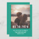 Einfaches modernes Foto Ankündigung Datum freihalten mit einem fett-modernen, einfachen Rechteck-Overlay in Grün. Fügen Sie ein Foto und Ihre Hochzeitsdetails zu anpassen. Hintergrundfarbe auf der Rückseite der Einladung kann geändert werden, um das Foto zu ergänzen oder Ihre Hochzeitsfarbe hinzuzufügen.