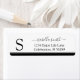 Einfache moderne Rücksendeadressen-Aufkleber für den Anfangsbrief Ihrer Familie für Ihre Korrespondenzen. Das elegante, gürtelförmige Skript passt zum Liniendesign in Schwarz/Weiß, gleicht es jedoch im Stil aus und schafft so eine lustige Drehung zum minimalistischen Look.
