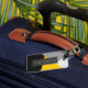 Einfaches modernes graues gelbes und schwarzes Geo Gepäckanhänger