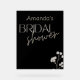 Einfaches, elegantes Brautparty Acrylzeichen. Blumenakzent, schwarzer Hintergrund.