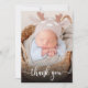 Einfaches, modernes Script Neugeborenes Baby Foto Dankeskarte