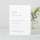 Diese elegante, weiße und staubige blaue Hochzeit bewahrt die Dattelkarten, die einfach und minimalistisch sind, aber aufgrund der modernen handgeschriebenen Schrift und des sauberen Layouts sehr stilvoll sind. Ihr Foto und ein QR-Code gehen auf die Rückseite.