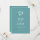 Verkünden Sie Ihre Verlobung mit dieser modernen Save the Date Karte. Es bietet einen Mix aus klassischer Schrift und Schrift-Typografie in Weiß auf einem soliden türkisblauen Hintergrund. Geben Sie die Monografie der Braut und des Bräutigams in die Mitte eines Wappen ein. Alle Farben können auf Ihre Hochzeitsfarben abgestimmt werden. Verwenden Sie die Vorlagenfelder, um Ihren Namen und Ihr Hochzeitsdatum anzupassen. Wählen Sie aus einer Vielzahl von hochwertigen Kartenvorräten. Mein Favorit dafür ist Perlenschimmer. Mix und Übereinstimmung mit vielen meiner Designs, um Ihr individuelles Hochzeitsthema zu erstellen. Ein minimales und dennoch elegantes Design für Hochzeitsfeiern und Ankündigungen von Verlobungen. Die passende Suite für Hochzeitsbriefpapier finden Sie unter www.zazzle.com/dotellabelle