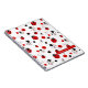 Einfaches und elegantes Muster mit roten, schwarzen und weißen Ladybugs-Cliparts in rot und schwarz mit Kreise und Punkten und einem personalisierten Namensschild. Ändern Sie den Namen, um zu personalisieren oder anzupassen, um Ihre eigene Touch hinzuzufügen.