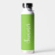 Moderne, helle Neon Linde grüne Wasserflasche mit einem einfachen und minimalistischen Design mit Ihrem Namen in einem eleganten Skript. Ein niedliches Design perfekt für ein Mädchen.