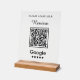 Erstellen Sie Ihr eigenes einfaches Personalisiertes Unternehmen "Verlass eine Überprüfung" Acrylzeichen. Ermutigen Sie zufriedene Kunden, sich mit diesem beruflichen Acryl-Zeichen zu teilen. Vollständig anpassbar mit Ihrem Firmennamen, Logo, Rezensionsplattformen (wie Google, Yelp oder Facebook) und einem QR-Code für sofortigen Zugriff. Eine stilvolle und funktionelle Methode, um Ihre Kundenerfahrung zu verbessern und die Online-Sichtbarkeit zu erhöhen - ideal für Zähler, Empfang oder Karo-Out-Schreibtische.