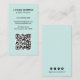 Moderne vertikale Visitenkarte mit einem einfachen und minimalistischen Stil mit QR Code auf der Vorderseite und Social Media Icons auf der Rückseite. Alle Designelemente sind schwarz auf einem türkisfarbenen Hintergrund. Ein schlichtes und minimales Design, das für jedes Unternehmen beruflich angepasst werden kann.