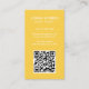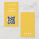 Moderne vertikale Visitenkarte mit einem einfachen und minimalistischen Stil mit QR Code auf der Vorderseite und Social Media Icons auf der Rückseite. Alle Designelemente sind in Weiß auf einem gelben Hintergrund gehalten. Ein schlichtes und minimales Design, das für jedes Unternehmen beruflich angepasst werden kann.