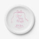 Sie bindet den Knoten! Mit einem einfachen, minimalistischen Design mit einem zauberhaften rosa Bogen und der handgeschriebenen Phrase "Sie bindet den Knoten." Whimsikischer Stil für ein lässiges Brautparty Feiern. Personalisieren Sie die Vorlage, um den Namen und das Veranstaltungsdatum der Braut einzufügen, sodass jede Platte für den Anlass ein besonderer Vorzug ist. © Kimbellished, LLC