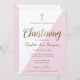 Einfaches Rosa Weißes Gold Cross Virtual Christeni Einladung