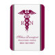 Personalisierter Flex-Magnet mit einem roten Cadaceus-Symbol mit den Buchstaben R N auf beiden Seiten. Ein rötlich lila Rahmen mit einem schwarzen Streifen auf beiden Seiten.