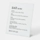 Dieses einfache Hochzeitscocktail-Bar verleiht Ihrem besonderen Tag eine Touch Charme. Das schlichte und dennoch elegante Hotel besticht durch einen modernen Schriftart, der sich perfekt für eine Hochzeitsfeier eignet. Dieses Schild ist ideal, um die Gäste mit Stil und Leichtigkeit zu Ihrer Cocktailstation zu führen. Ein absolutes Muss für Paare, die ihre Feier ausweiten möchten!