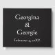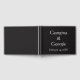 Dieses individuell gestaltbare Gästebuchdesign zeichnet sich durch ein schlichtes, sauberes, schlichtes Erscheinungsbild aus, mit weißem Text auf dunklem Hintergrund. Die Namen und das Datum können personalisiert sein.