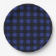 Einfaches Schwarz-Blau-Kariertes Muster Pappteller