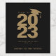 Minimalistischer Abschluss Schwarz und Gold Jahr der Abschluss Weinflasche Etikett in modernem, schicken und eleganten Typografie Stil. Personalisieren Sie sich mit dem Jahr des Abschlusses, dem Namen der Schule und der kurzen Glückwunschnachricht.