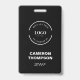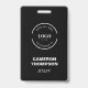 Passen Sie dieses Abzeichen-Design für Ihre Mitarbeiter, Mitarbeiter, Crew für Ihr Unternehmen, um die wesentlichen Mitarbeiter zu identifizieren. Fügen Sie Ihr weiße Logo, Ihren Mitarbeiternamen und Ihren Titel mit diesen leicht zu bedienenden Abzeichen-Vorlagen mit schwarzem Namen hinzu.