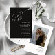 Diese 5" x 7" speichern die Datumskarten in einem minimalistischen Design auf schwarzem Hintergrund mit Platzhaltern für die verlobten Paarnamen, das Hochzeitdatum und die Veranstaltungsinformationen. Die Rückseite hat einen Platz, um Ihr Lieblings-Foto mit den Pärchen Namen und Hochzeitsdatum einfügen.