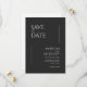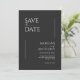 Diese 5" x 7" speichern die Datumskarten in einem minimalistischen Design auf schwarzem Hintergrund mit Platzhaltern für die verlobten Paarnamen, das Hochzeitdatum und die Veranstaltungsinformationen. Die Rückseite hat einen Platz, um Ihr Lieblings-Foto mit den Pärchen Namen und Hochzeitsdatum einfügen.