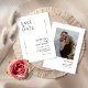 Diese 5" x 7" speichern die Datumskarten in einem minimalistischen Design in schwarzen Buchstaben auf weißem Hintergrund mit Platzhaltern für die verlobten Paarnamen, das Hochzeitsdatum und die Veranstaltungsinformationen. Die Rückseite hat einen Platz, um Ihr Lieblings-Foto mit den Pärchen Namen und Hochzeitsdatum einfügen.