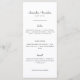 Ein einfaches und modernes, individualisierbares Menü mit dem Namen des Paares und dem Hochzeitsdatum oben in klassischem Schwarz und Weiß. Ein gepunkteter Backer betont jede Tisch- oder Platzeinstellung für einen formalen Anlass. Diese Menüs sehen auf jedem Teller gut aus!
