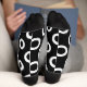 Diese schwarz-weißen Socken haben ein weißes Kreismuster auf einem schwarzen Hintergrund.