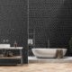 Ein Muster weißer Quadrate ist auf schwarzen Tapeten.