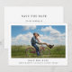 Minimalistische Foto Save the Date Karte mit einem einfachen Design mit Ihrem horizontalen Bild und Ihre Hochzeitsdetails unten in einem Serif-Schriftart. Die Rückseite hat alle Details in schwarz auf einem weißen Hintergrund. Text und Hintergrund können in beliebig viele Farben geändert werden. Ein elegantes und modernes Design, um Ihr Hochzeitstag stilvoll zu verkünden.