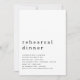 Einfaches Abendessen mit Schwarz-weißer Probe. Der Header ist groß in stilvollen Kleinbuchstaben mit den Details unten. Viel Weiß an der Spitze für ein zeitgenössisches Ambiente! Personalisieren Sie den Text einfach auf Ihre eigenen Daten.