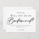 Einfach schick und stilvoll präsentiert sich unsere minimalistische Winterhochzeitskollektion mit eleganter, kursiver Typografie für Ihre moderne Veranstaltung. Senden Sie diese werden Sie meine Bridesmaid Postkarten an Ihre besten Freunde. Ein formelles Brautparty Vorschlag Postcard.