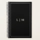 Einfach schwarzer Businessplaner mit modernem und dennoch elegantem Design mit zwei Buchstaben-Monogramm, umgeben von einer Grenze. Die Rückseite hat Ihre Kontaktinformationen. Dieser personalisierte Planer in minimalistischem Stil ist ideal für jede Art von Unternehmen.