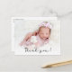 Einfache Minimalistische moderne Script Neugeborenen Baby Foto Vielen Dank Postcard. Enthält einen hübschen "Dankeschön"-Text in einem handgeschriebenen Kalligraphie- oder Typografie-Schriftart-Foto-Overlay-Skript. Auf der Rückseite vorgefertigte persönliche Nachricht in schwarz-weiß. Einfach mit Ihrem Lieblings-Baby-Foto und Details personalisieren.