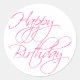 Einfaches Script Pink Happy Birthday Runder Aufkleber