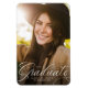 Ein klassischer und eleganter Script-Absolvent in Weiß sitzt am unteren Ende eines senkrechten Fotos. Der benutzerdefinierte Text enthält Platz für den Namen des Absolventen und auch die Schule und das Jahr Details. Diese Magnetkarte ist der perfekte Weg, um die Leistung Ihres Absolventen an Freunde und Familie anzukündigen!