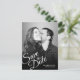 Passen Sie diese stilvolle, helle moderne Hochzeitskiste Save the Date Foto Postcard mit Schriftart mit weißer Schrift und der Aufschrift "Wir heiraten! Und würde Liebe für Sie Save the Date (Datum hier), um an unserem besonderen Tag teilhaben zu können! Förmliche Aufforderung zur Befolgung." Sie können diese Formulierung auch mit Ihren eigenen Worten ändern. Dieses Postcard Design ist einfach und hübsch und eignet sich perfekt für ein vertikales Bild. Ändern Sie alle Informationen und das Vorlagenbild mit Ihren eigenen.