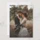 Zeigen Sie Ihre Wertschätzung mit unserem Simple Script Modern Rustic Wedding Foto Dankeschön Card. Mit einem atemberaubenden Foto der Neuvermählten in einer ruhigen, rustikalen Umgebung erweckt diese Karte die intimen und herzlichen Momente Ihres besonderen Tages. Die elegante, handgeschriebene Schrift und das minimalistische Design fügen eine Touch moderner Eleganz hinzu, während die Überlagerungsbotschaft Ihre Dankbarkeit auf persönliche und sinnvolle Weise vermittelt. Ideal für Paare, die Einfachheit und Eleganz schätzen, dieses Foto Dankeschön-Karte ist ein wunderschöner Weg, um Ihren Gästen für ihre Anwesenheit und Unterstützung zu danken. Teilen Sie Ihre Erinnerungen und Ihre Wertschätzung mit diesem stilvollen und zeitlosen Design.