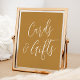 Einfaches und elegantes Hochzeitszeichen mit der Phrase "Karten und Geschenke" in weißem Schrift mit ockerfarbenem Hintergrund. Personalisieren Sie das Zeichen mit optionalem, benutzerdefiniertem Text, wie z.B. Ihren Namen, Hochzeitstag, Dankeschön-Nachricht, etc. Das Schild kann auch für andere Veranstaltungen wie Brautpartys, Babyduschen, Geburtstagspartys und vieles mehr verwendet werden!