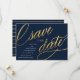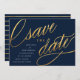 Diese einzigartigen, modernen speichern die Daten mit extravaganten Drehbüchern in einem Imitat Gold-Folie auf einem dunkelmarineblau Hintergrund, mit den Einzelheiten der Hochzeitsankündigung in Weiß. Der Backer zeichnet sich durch ein trendiges Marine- und Goldstripmuster aus. Ändern Sie die Hintergrundfarbe mit dem Tool "Anpassen"!