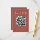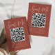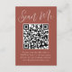 Mit diesen modernen Hochzeitskarten mit QR-Code können Sie Ihre Hochzeit oder Veranstaltung ganz einfach UAWG machen. Die eleganten Hochzeitsgehäuse-Karten zeigen "Scan Me" in einem skurrilen weißen Skript mit Rosthintergrund. Personalisieren Sie die Karte mit Ihrem UAWG, Ihrer Hochzeitswebsite und den Instruktionen für Gäste, die die Vorlagen verwenden. Auf der Kartenrückseite ist Platz für zusätzlichen Text und/oder Foto vorhanden. Entworfen, um mit unserer Simple Script Hochzeitskollektion zu koordinieren.