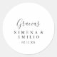 Dieses kleine spanische Dankeschön-Gastgeschenk Hochzeit Klassiker rund Aufkleber ist perfekt für eine moderne Hochzeit. Das einfache und elegante Design zeichnet sich durch klassische und extravagante Schriftzeichen in Schwarz und Weiß aus. Machen Sie den Aufkleber mit Ihren eigenen Namen, der Veranstaltung (falls zutreffend) und dem Datum versehen. Diese Aufkleber können einen Hochzeitsempfang, Brautparty oder jede Veranstaltung ergänzen!
