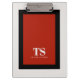 Dieses markante Clipboard-Design hat klassische Gestaltungselemente eines fett kontrastierenden, geometrischen rechteckigen Rahmens in farbig rot und schwarz über einem weißlichen Hintergrund. Eine Textvorlage ist mit Monogramm-Initialen und Namen enthalten, um nach Belieben personalisieren zu können. Dieses Design ist stilvoll und raffiniert, aber einfach und modern mit geschlechtsneutralem Anklang. Es ist eine großartige Wahl für den Rückweg zur Schule, Zuhause oder ins Büro.