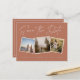 Mit diesem Simple Terracotta Foto Wedding Save the Date Cards mit drei hochgeschätzten Fotos, elegantem Drehbuch und minimalistischer Typografie können Sie Ihren besonderen Tag verkünden. Ideal für Paare, die ein schlichtes und stilvolles Design für ihre kommende Hochzeit suchen.