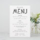 Budget Einfaches Text-beliebiges Farbhochzeitsmenü. Mit dem günstigen Preis 5.5" x 8.5" können Sie den Text ganz einfach auf Ihre eigenen Details personalisieren, die Alternativen für Ihre veganen oder vegetarischen Optionen enthalten. In Schwarz und Weiß dargestellt, die Sie ändern können, wenn Sie möchten, alle Farben Ihrer Wahl, um Ihre Hochzeit Thema.
