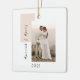 Ihr erstes Jahr als verheiratetes Ehepaar muss gedenken. Dieses verheiratete und fröhliche Ornament ist eine ideale Art, genau das zu tun. Benutzen Sie ein vertikales Foto von Ihrer Hochzeit oder Ihrem Lieblings-Paar-Foto. Laden Sie es hoch und ändern Sie das Jahr, falls erforderlich. Dieses minimalistisch-weiße und rot-rosa Design schafft einen perfekten Sake, den Sie über Jahre genießen werden.