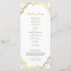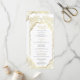 Dieses Hochzeitsprogramm umfasst ein minimalistisches Golddesign mit einer Touch schlichten Charmes. Die Vorderseite zeigt die Namen des Paares in einem sauberen, goldenen Rahmen und unterstreicht Eleganz durch Einfachheit. Auf der Rückseite sind die Details der Hochzeit in einem gepflegten, dezent mit raffinierten goldenen Schnörkeln angereichert. Der schlichte Stil und der moderne Minimalismus machen diese Programmkarte ideal für Paare, die zeitlose Eleganz mit einer anmutigen, charmanten Touch bevorzugen.