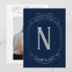 Diese minimale und schicke Save the Date Einladung ist die perfekte Möglichkeit, Ihre Hochzeit zu verkünden. Die Vorderseite der Karte verfügt über ein schönes Monogramm-Wappen mit einem Bogen oben, und die Rückseite der Karte kann mit Ihren Foto- und Hochzeitsdetails angepasst werden. Diese Einladung wird Ihre Gäste beeindrucken und sie für Ihren großen Tag begeistern.